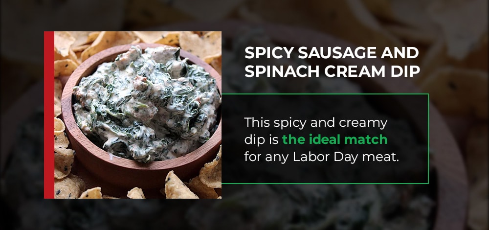 Keep it around the grill so you can snack on it while barbecuing or share it with guests. Start by dicing up the sausage and pan-frying the pieces until they’re brown but still juicy. When the sausage is done, toss washed baby spinach into the same pan so it can soak up the meaty flavor.