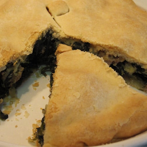 3. Mix sausage, onion, spinach, garlic powder, salt and pepper together. Place into 9-inch pie shell. Top with mozzarella.