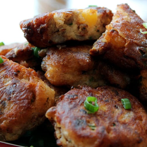 4. Drop 2-inch scoops of batter into hot canola oil and brown (they will float when done). Serve with a favorite dipping sauce.