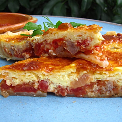 5. Divide the sausage and tomato mixture evenly between the two crusts. Top each with 4 ounces of mozzarella cheese and 1 tablespoon Parmesan cheese.