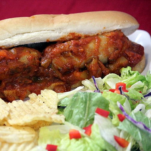 3. Turn your low cooker to low heat and let cook for 3 hours. Once finished, place into a bun and add sauce. If desired, add other optional items such as hot peppers or cheese