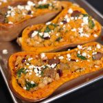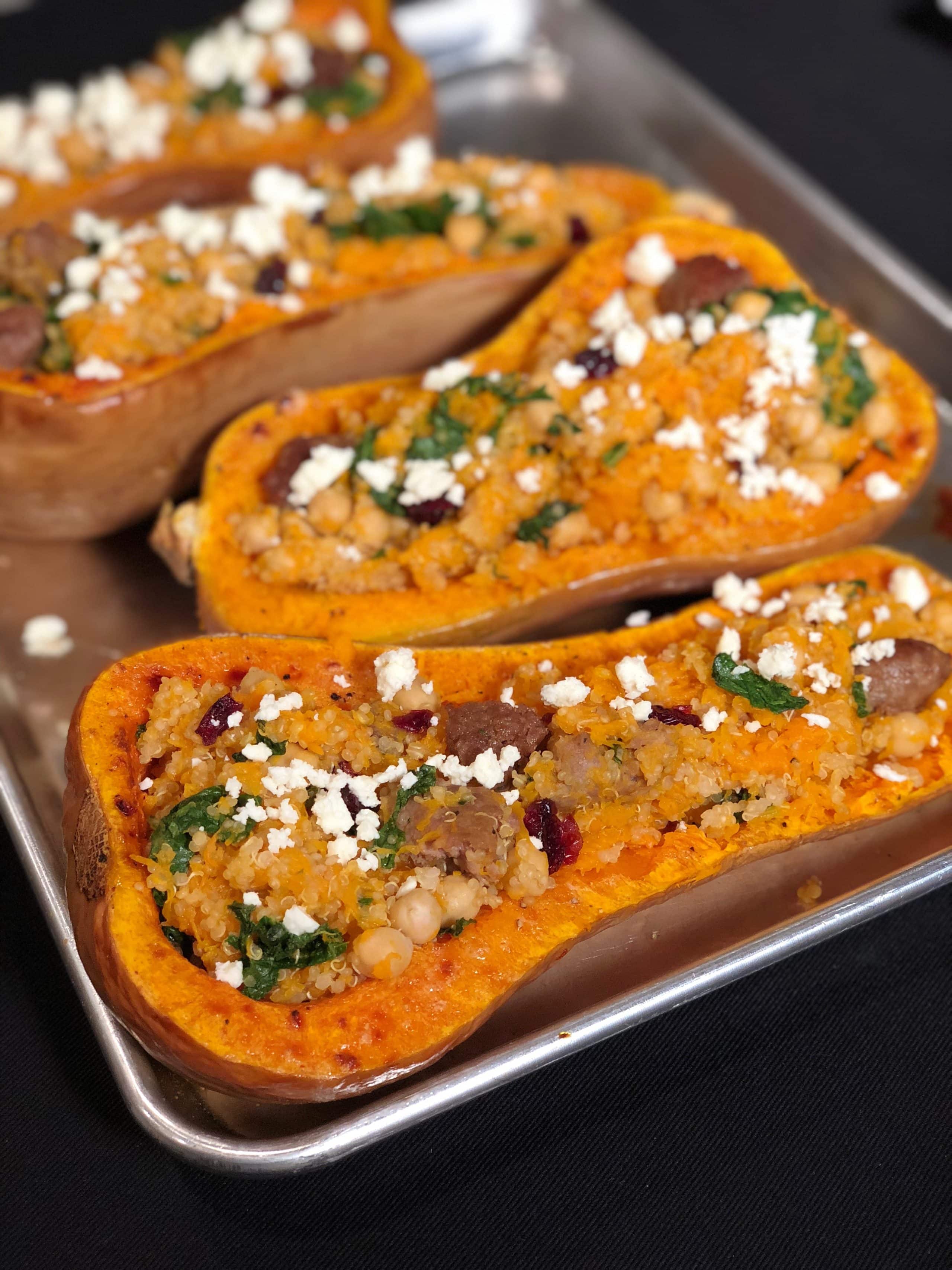 How to make Quinoa-Stuffed Butternut Squash With Premio Sausage, Cranberries and Kale: