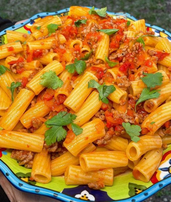 1. Boil pasta: Bring a large pot of salted water to a boil. Add the rigatoni, and cook to al dente. Reserve 1 cup of pasta water, drain & set aside.