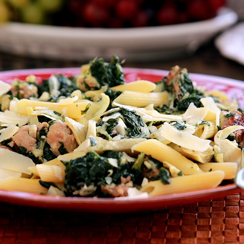 5. Open and drain artichokes. Chop into bite sized pieces and add to the sauce. Add spinach.